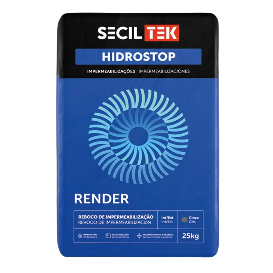 O HIDROSTOP RENDER é uma argamassa vocacionada para a execução de camadas espessas de regularização com função de impermeabilização em suportes minerais, como betão e alvenarias.