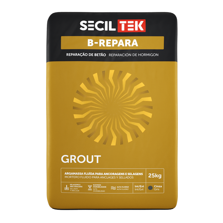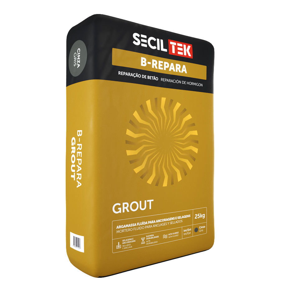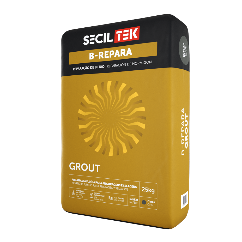 O B-REPARA GROUT é uma argamassa monocomponente e de retração compensada, formulada a partir de ligantes mistos, agregados siliciosos, calcários criteriosamente selecionados e adições, tais como resinas sintéticas, destinada a ancoragens e trabalhos de selagem em estruturas de betão.