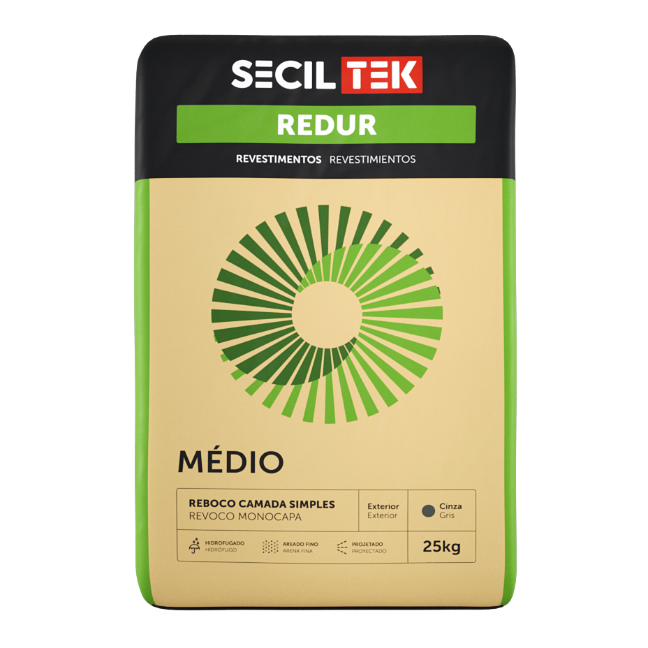 O REDUR MÉDIO, devido à sua granulometria média, é especialmente indicado na execução de rebocos em camada simples, permitindo a obtenção dos tradicionais tipos de acabamento, nomeadamente, areado, talochado e estanhado.