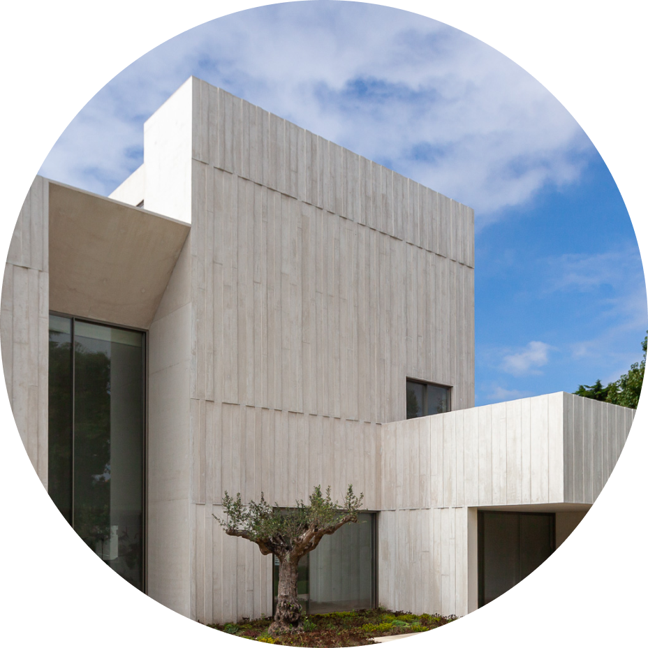 A utilização de cimento branco oferece soluções versáteis permitindo assumir as mais variadas formas e texturas, conjugando diferentes efeitos luz/sombra.